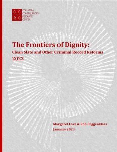 We are pleased to present our report on new laws enacted in 2022, titled The Frontiers of Dignity: Clean Slate and Other Criminal Record Reforms in 2022. While this report shows that the legislative momentum gathering since 2018 slowed somewhat in the past year, there has still been progress, with more new laws enacted this year than in 2018 when the current reform movement took off in earnest.